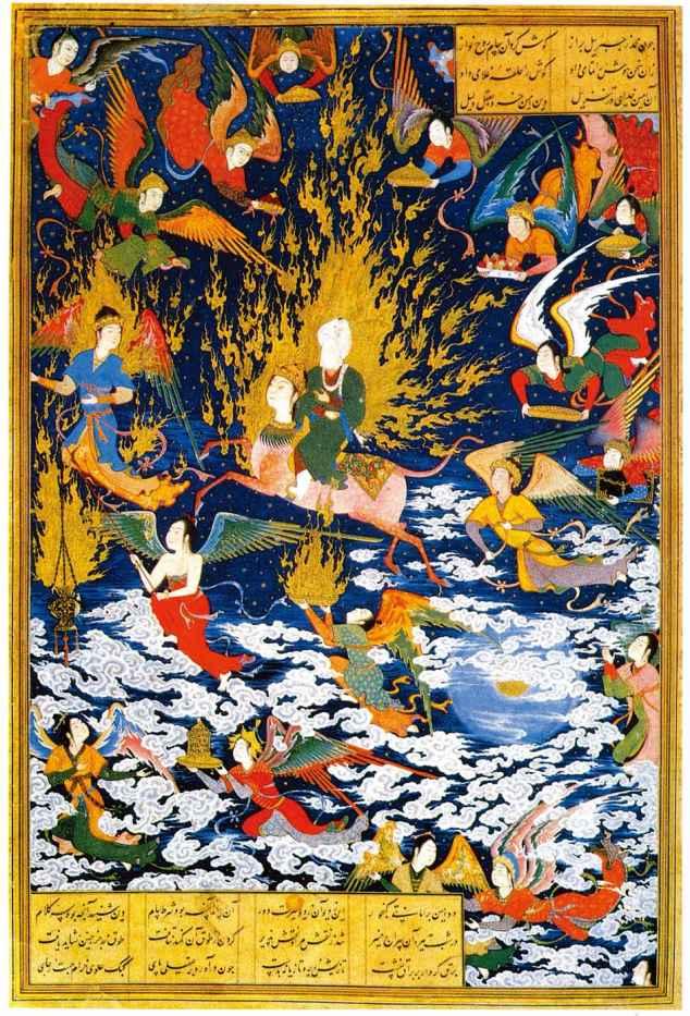 正当我愈来愈感到困惑时,沐浴在光芒中的天使朝我靠近,仿佛想帮助我,是的,就如安萨里在《壮丽瑰宝》(《壮丽瑰宝》:安萨里(1058—1111)著作,内容着重论述对灵魂、安拉、今生和来世的认识。)中写的那样,他柔和地说: