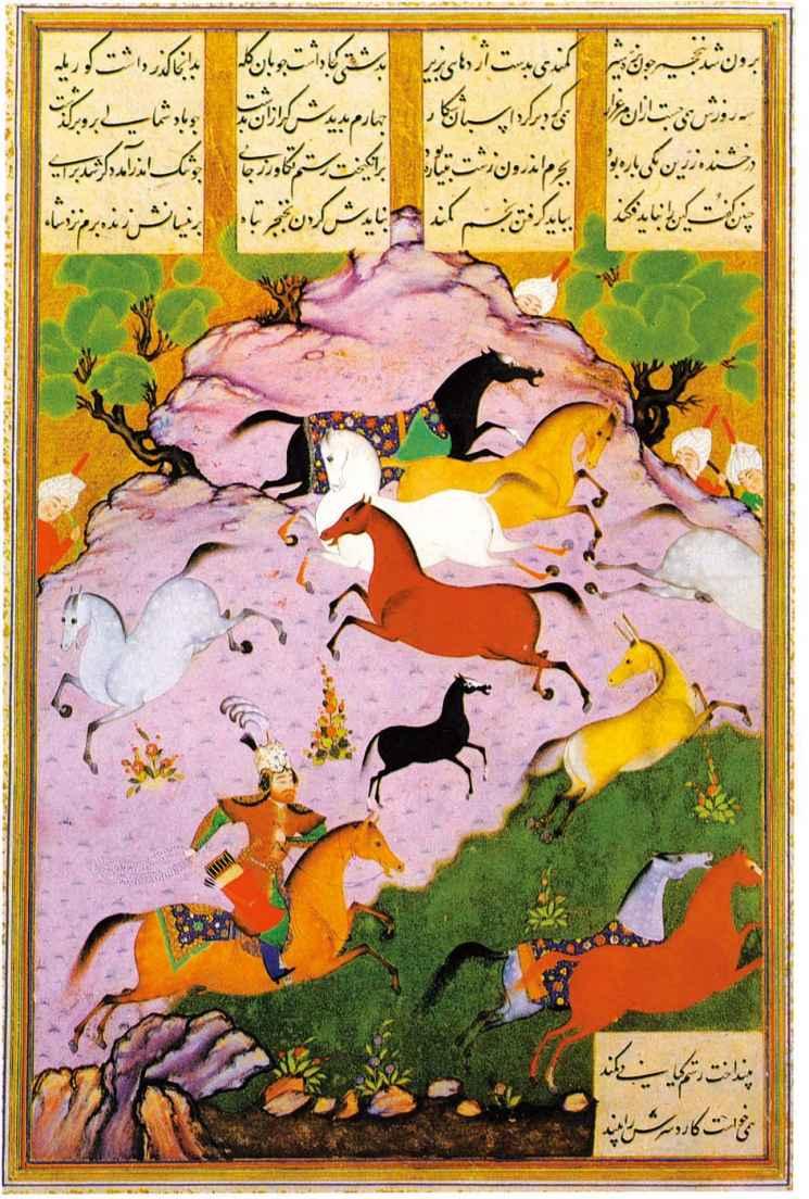 菲尔多西《列王记》插图作者:莫扎法尔·阿里绘制年代:1530—1535年流派:大不里士画派原图尺寸:26.8×17.3厘米现为私人收藏