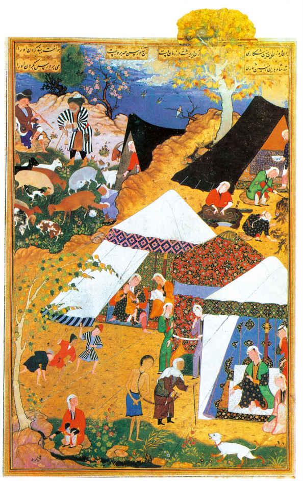 内扎米《蕾莉与马杰农》插图作者:米尔·赛义德·阿里绘制年代:1540年流派:大不里士画派原图尺寸:32×18.2厘米收藏在伦敦伯里塔尼亚依图书馆