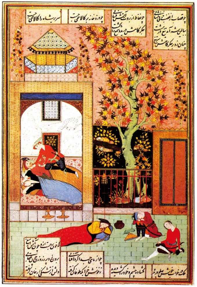 内扎米《霍斯陆与席琳》插图作者:哈伊达尔·古里绘制年代:1624年流派:后期设拉子画派原图尺寸:22.5×14.7厘米收藏在巴黎国家图书馆
